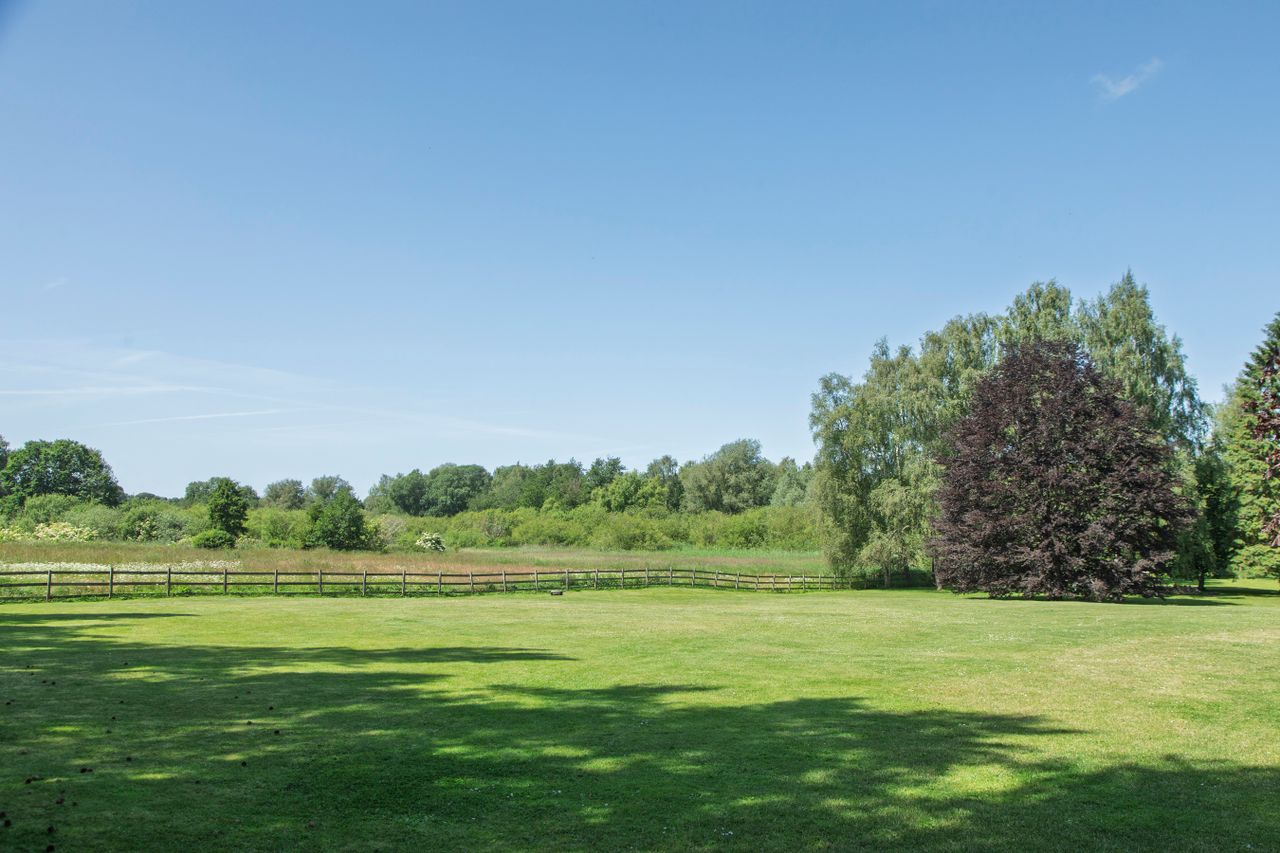 Villaen ligger højt og smukt i det let kuperede åslandskab, på en 19.760 m² (1,97 ha) stor naturgrund, med en stor nem parklignende have, hvor to robotplæneklippere sørger for græsset aldrig bliver for langt. Her er enestående omgivelser med gamle træer, græsstier og masser af bevaret natur. Flere solrige kroge på grunden giver mulighed for at vælge efter dagens gang og lyset.