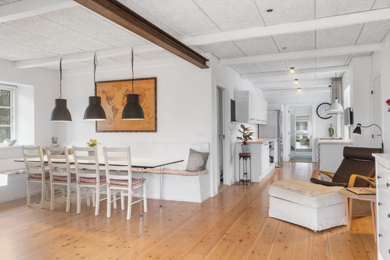 Boligen er 340 m2 stor. Her er en rolig og eksklusiv atmosfære med dejlig højt til loftet, flotte plankegulve,