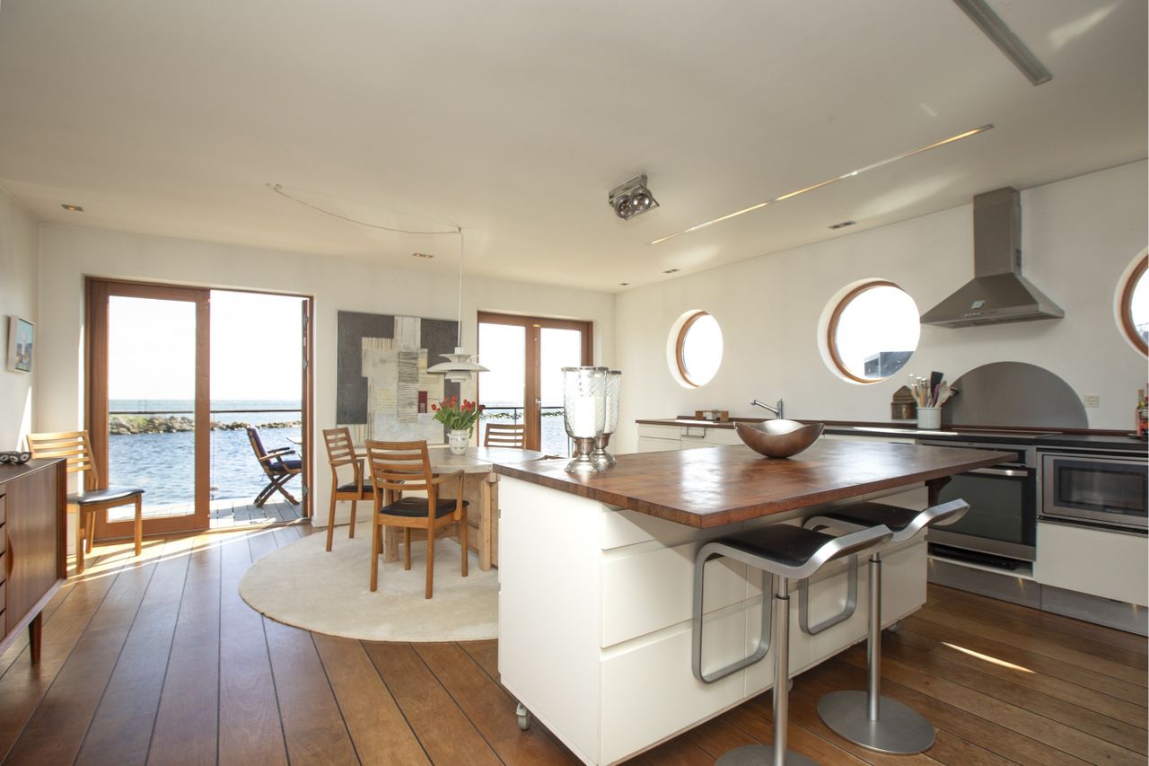 På Havnevej 49C finder man denne fantastiske, men noget utraditionelle bolig, en helt særlig husbåd fra