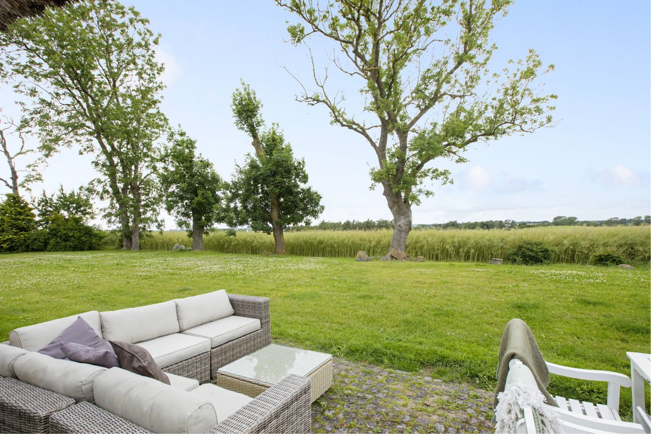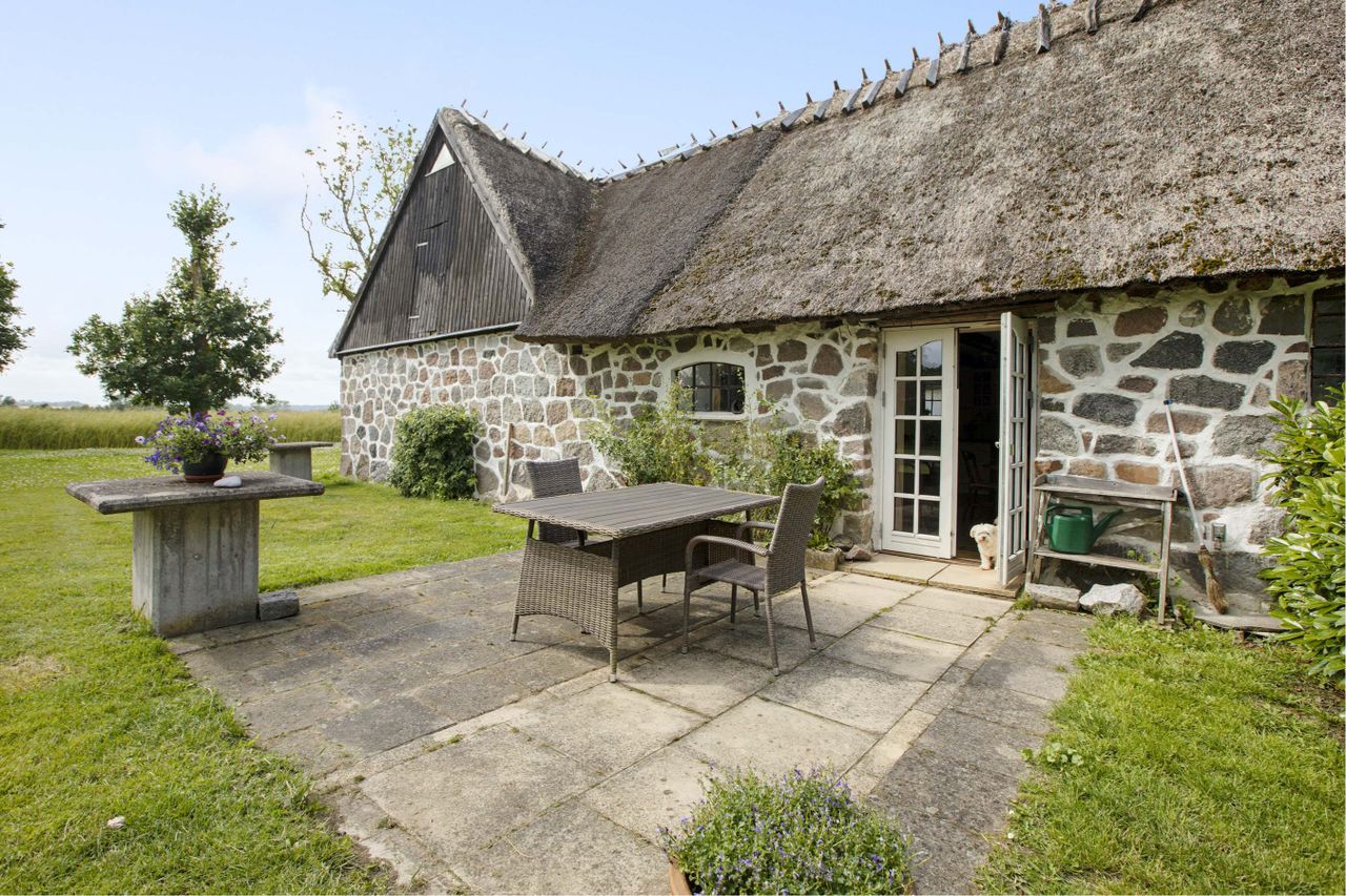Stråtækt ejendom på landet med kampestensmur midt i en fantastisk natur. Her er masser af plads og I