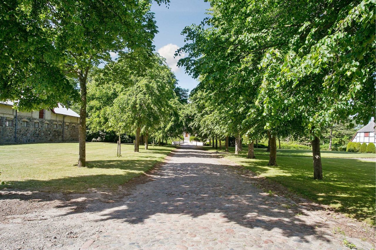 er omgivet af et dejligt parkanlæg. Ejendommen er fredet.