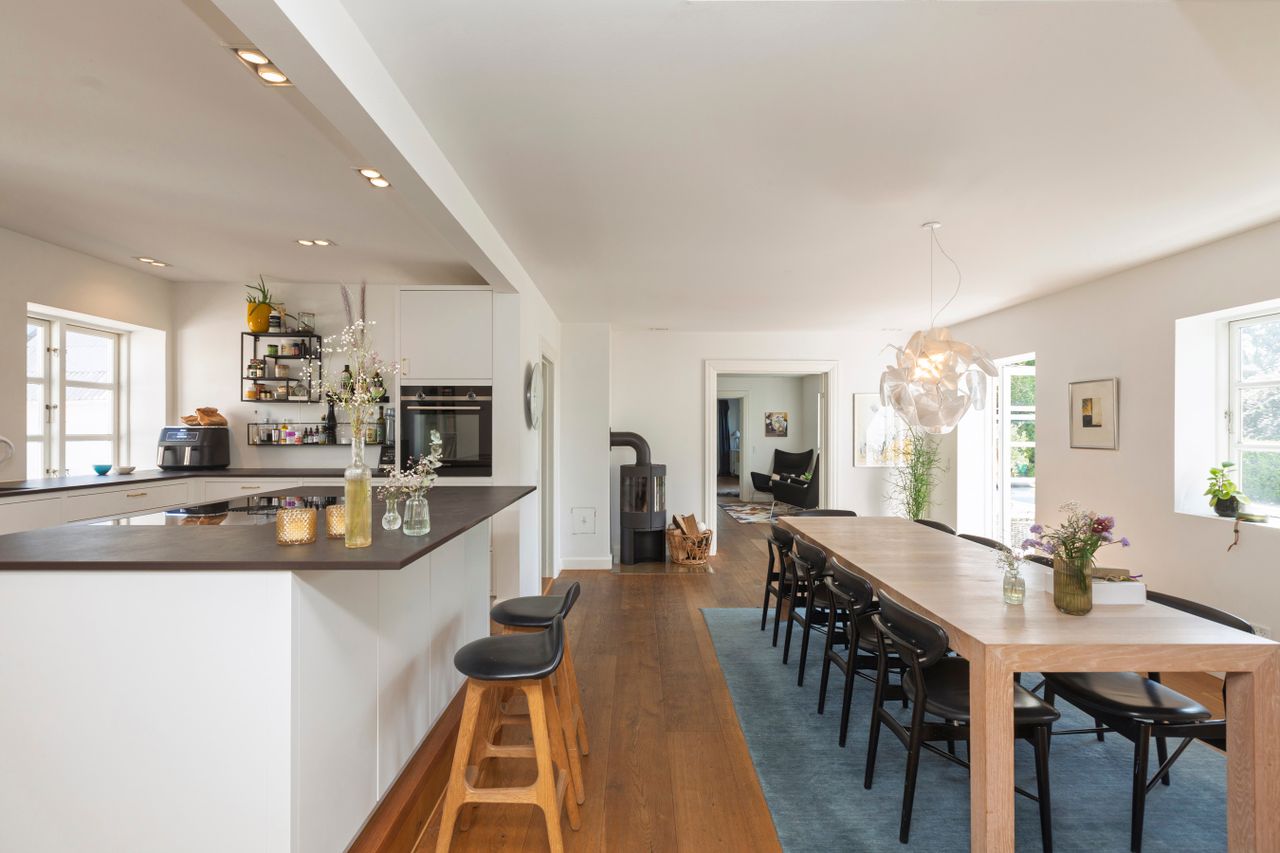 Der er god plads med to boliger og et samlet boligareal på i alt 553 m², fordelt på to separate boligenheder (351 m² / 202 m²), som ligger vinkelret på hinanden. Dette giver fine muligheder for at bo to generationer sammen eller som stor familie med plads til fx liberalt erhverv eller lignende. Ejendommen egner sig også til repræsentative formål. Uanset hvordan man vælger at indrette sig, er det bare usigeligt smukt.