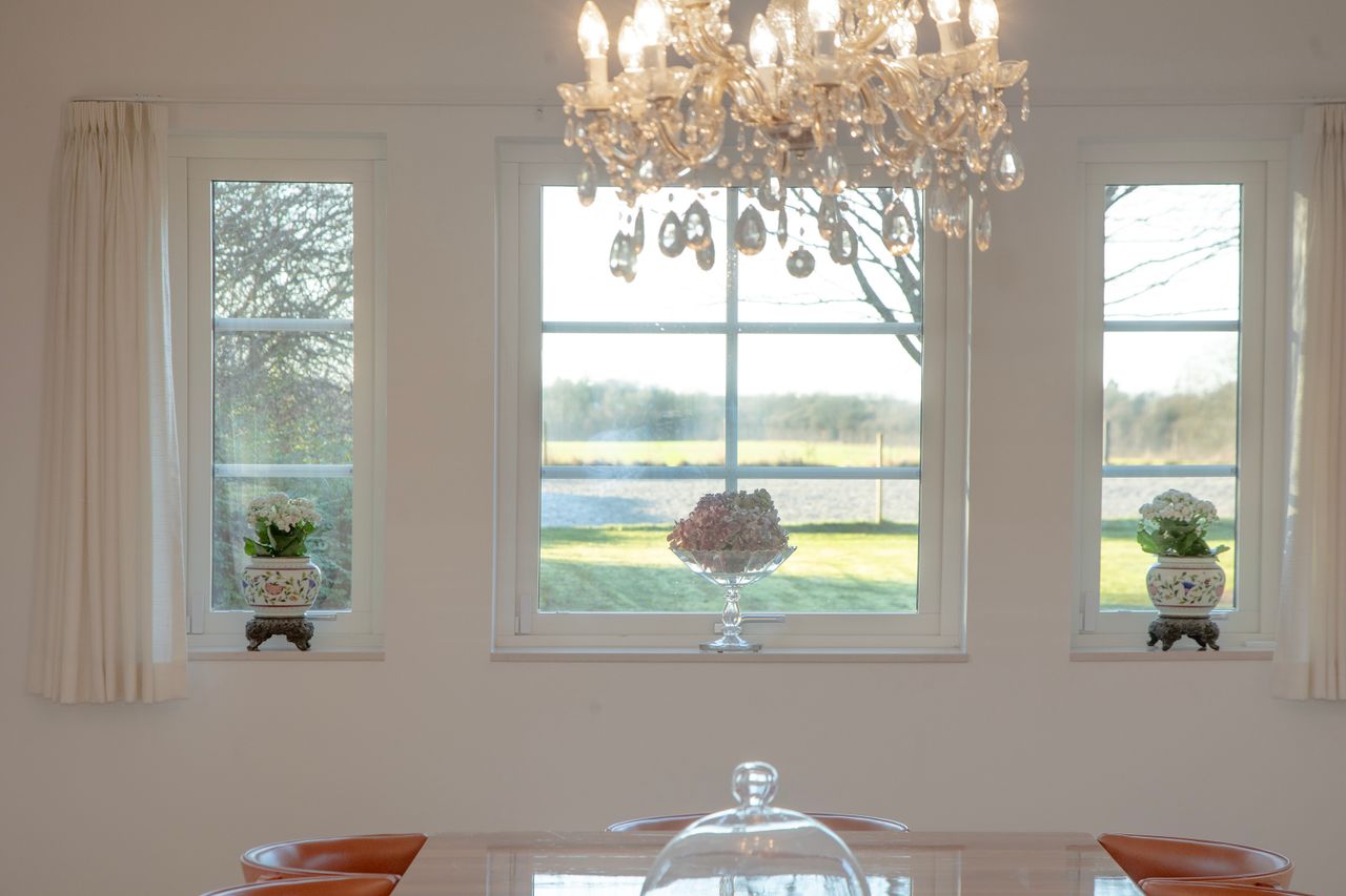 Det store, lyse køkken er familiens hjerte med god spiseplads og direkte forbindelse til imponerende spisestue. Her sidder man ugeneret med udsigten til både skov og have. Perfekt til både hverdagsmiddage og festlige lejligheder.