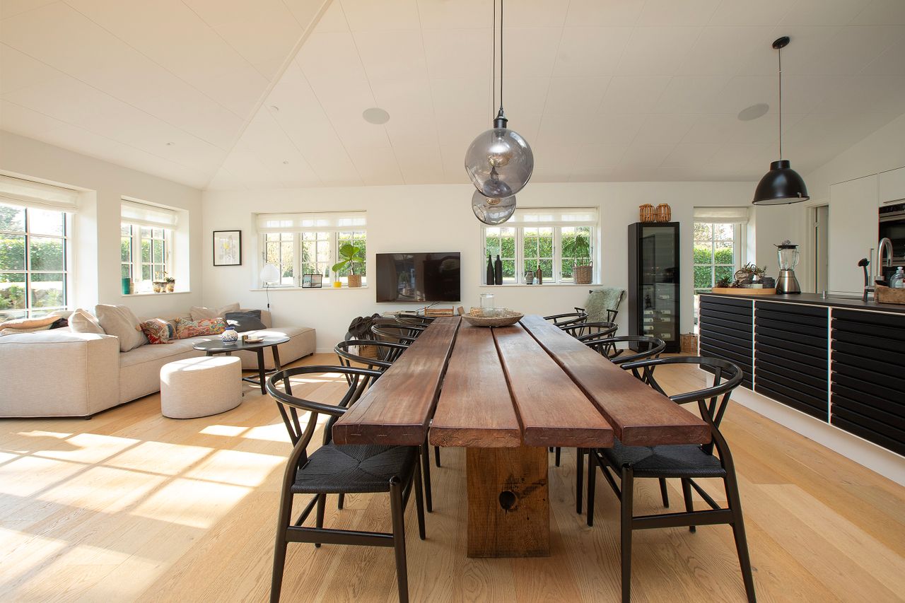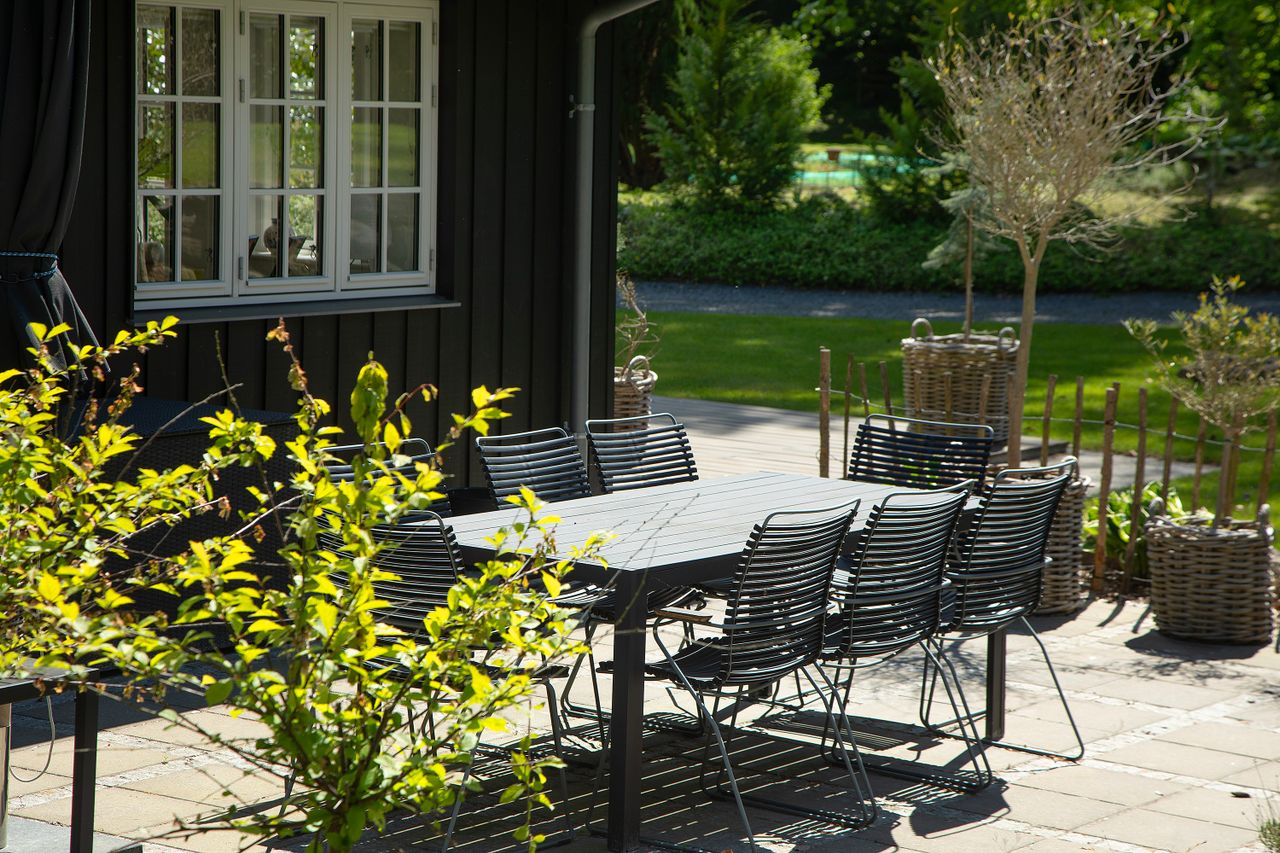 Fra køkken og stue er der et dejligt lysindfald med vinduer for oven og med store glaspartier ud mod have og terrasserne, som vender syd og vest. Man kan følge solen hele dagen og nyde mange gode timer herude.