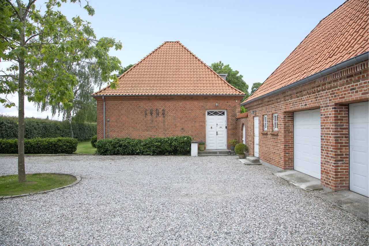 passer til husets proportioner og byggestil. I garagen findes et stort uudnyttet loft til opbevaring. Smukt