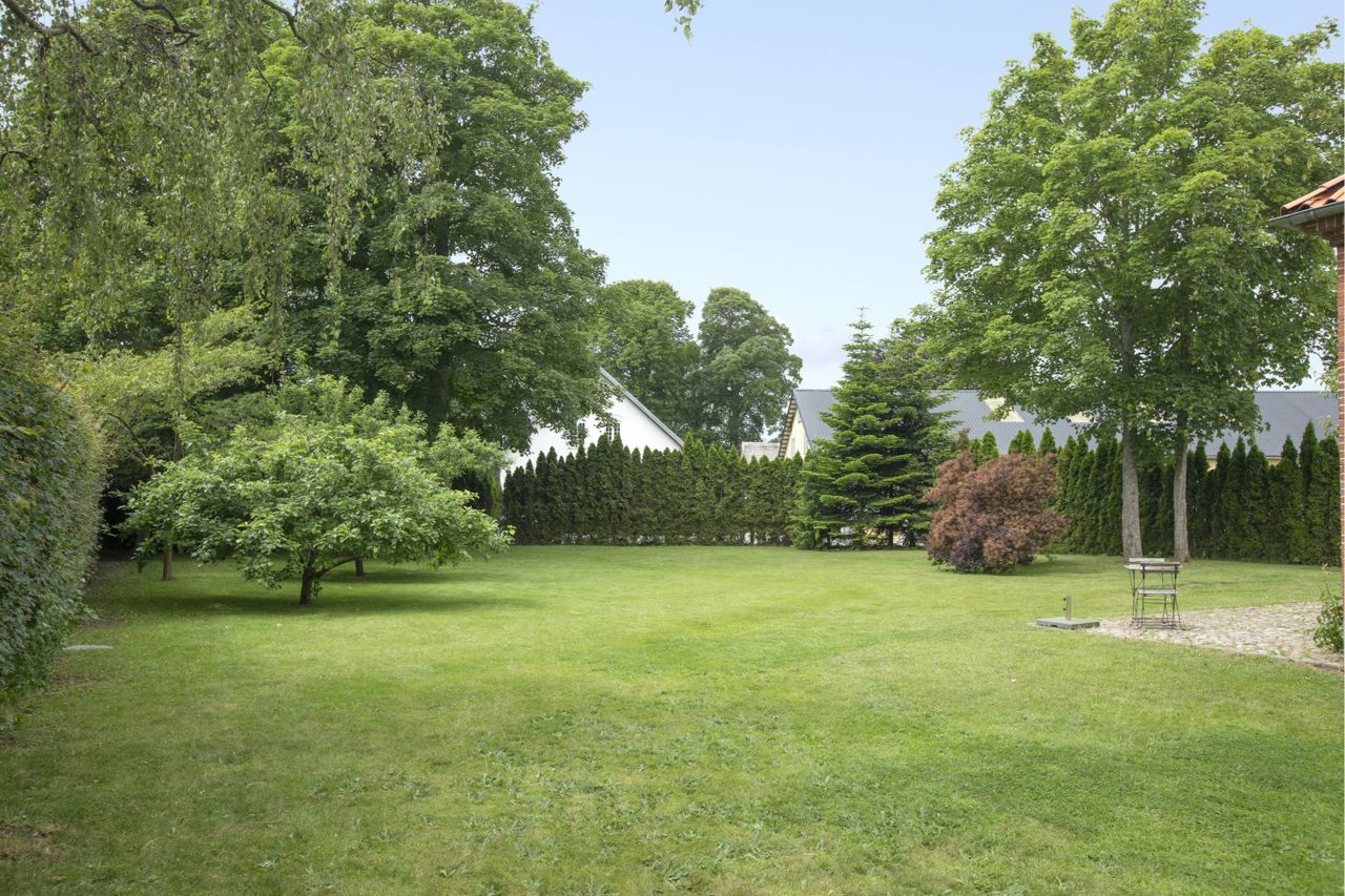 lækkert og privat gårdhavemiljø med terrasse og pigstensbelægning. Grundens areal er 2003 m² og
